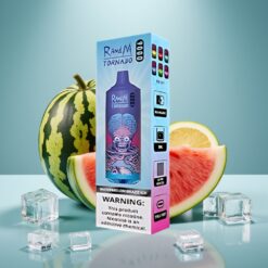 RandM Tornado 9000 Puffs Fresa Sandía Prime, 18mL, Pantalla RGB