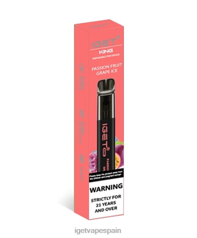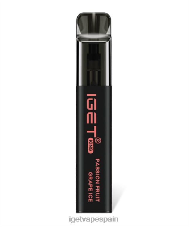 el iget king de hielo de uva y maracuyá proporciona un toque de uvas dulces y maracuyá con un refrescante acabado mentolado.