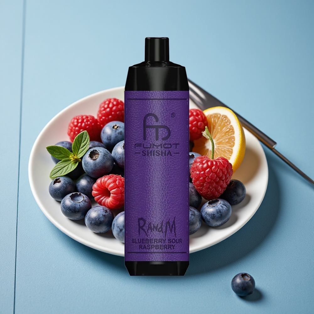 RandM Fumot Shisha 10000 Puffs Vape Desechable – Arándano Frambuesa Ácida, 18ml, 0.5% Nicotina