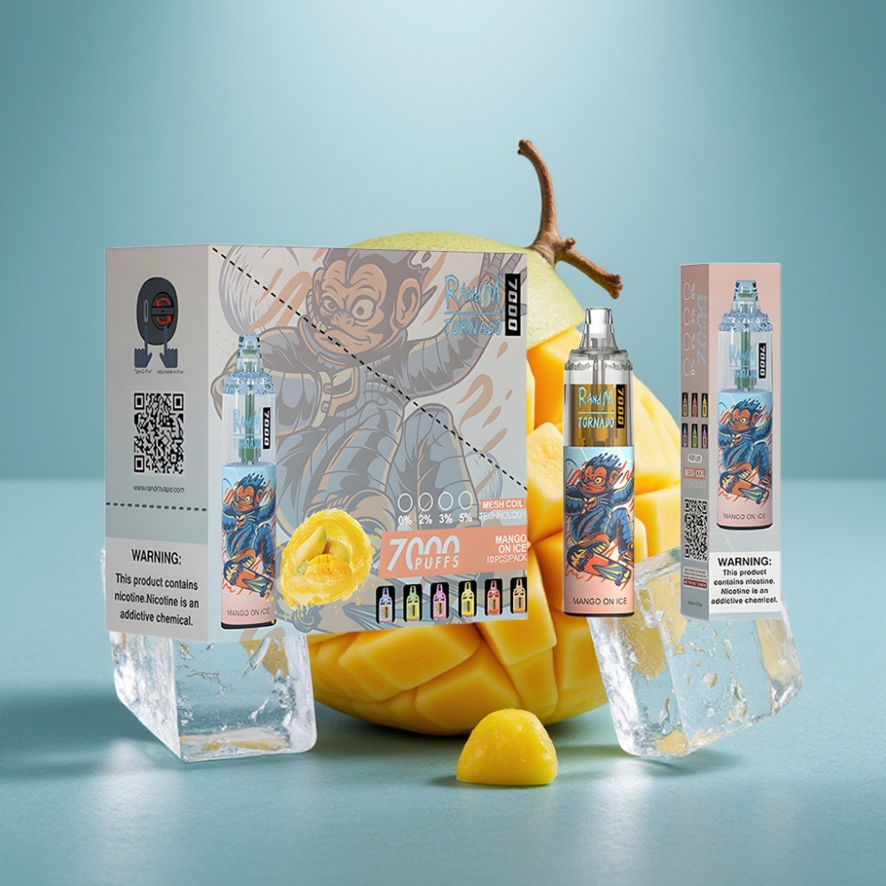 RandM Fumot Tornado 7000 Puffs Vape Desechable Mango con Hielo – 14ML, 850MAH, Malla