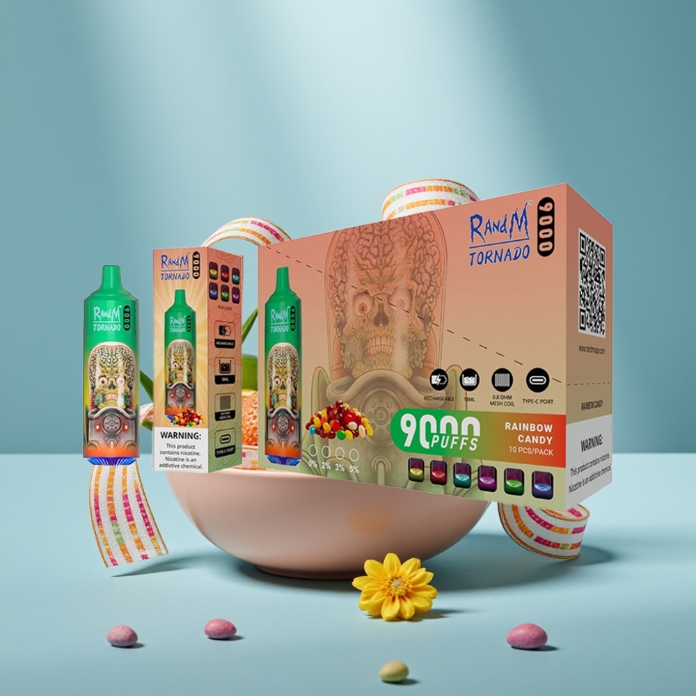 RandM Tornado 9000 Puffs – 18mL, 850mAh, Rainbow Candy (Caramelo Arcoíris)