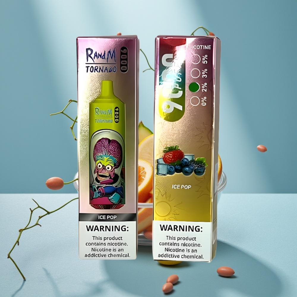 RandM Tornado 9000 Puffs Disposable Vape Ice Pop, 18 mL, Malla, Pantalla RGB